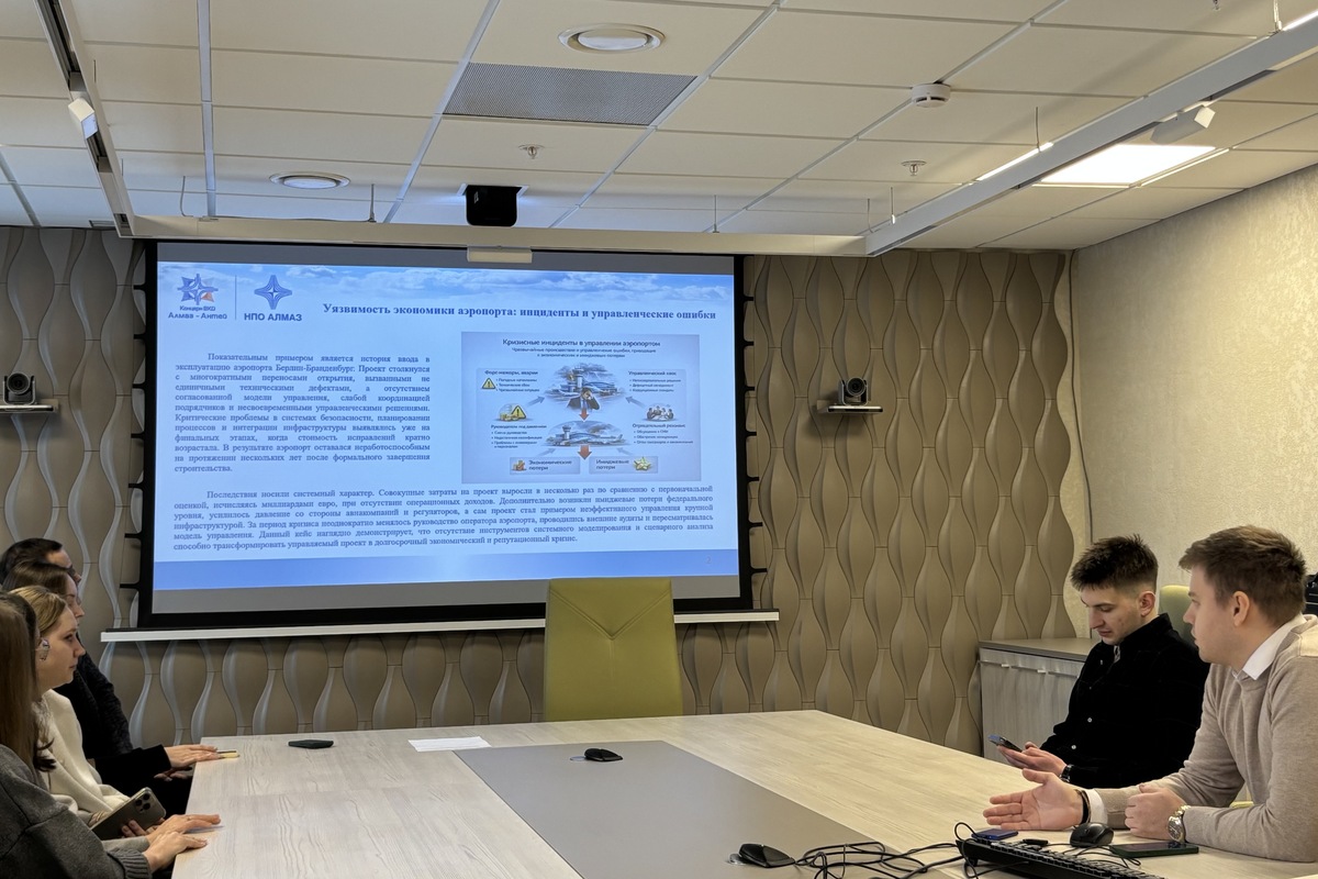 Елисей Николаевич Разгуляев, представитель ПАО «НПО „Алмаз“», детально раскрыл тему развития цифрового двойника как ключевого инструмента поддержки принятия решений. В основе доклада лежали практические кейсы внедрения, демонстрирующие устойчивое улучшение ключевых показателей: сокращение времени задержек, снижение перерасхода ресурсов и рост пунктуальности. Особый акцент был сделан на преодолении уязвимостей экономики аэропорта. На печальном примере многолетних задержек и многомиллиардных перерасходов при вводе аэропорта Берлин-Бранденбург докладчик наглядно показал, к каким системным кризисам ведёт отсутствие единой согласованной модели управления. Цифровой двойник, интегрированный в систему «Авиапортал», позволяет проводить сценарный анализ и избегать подобных катастрофических сценариев, оптимизируя решения для роста прибыли и операционной устойчивости.